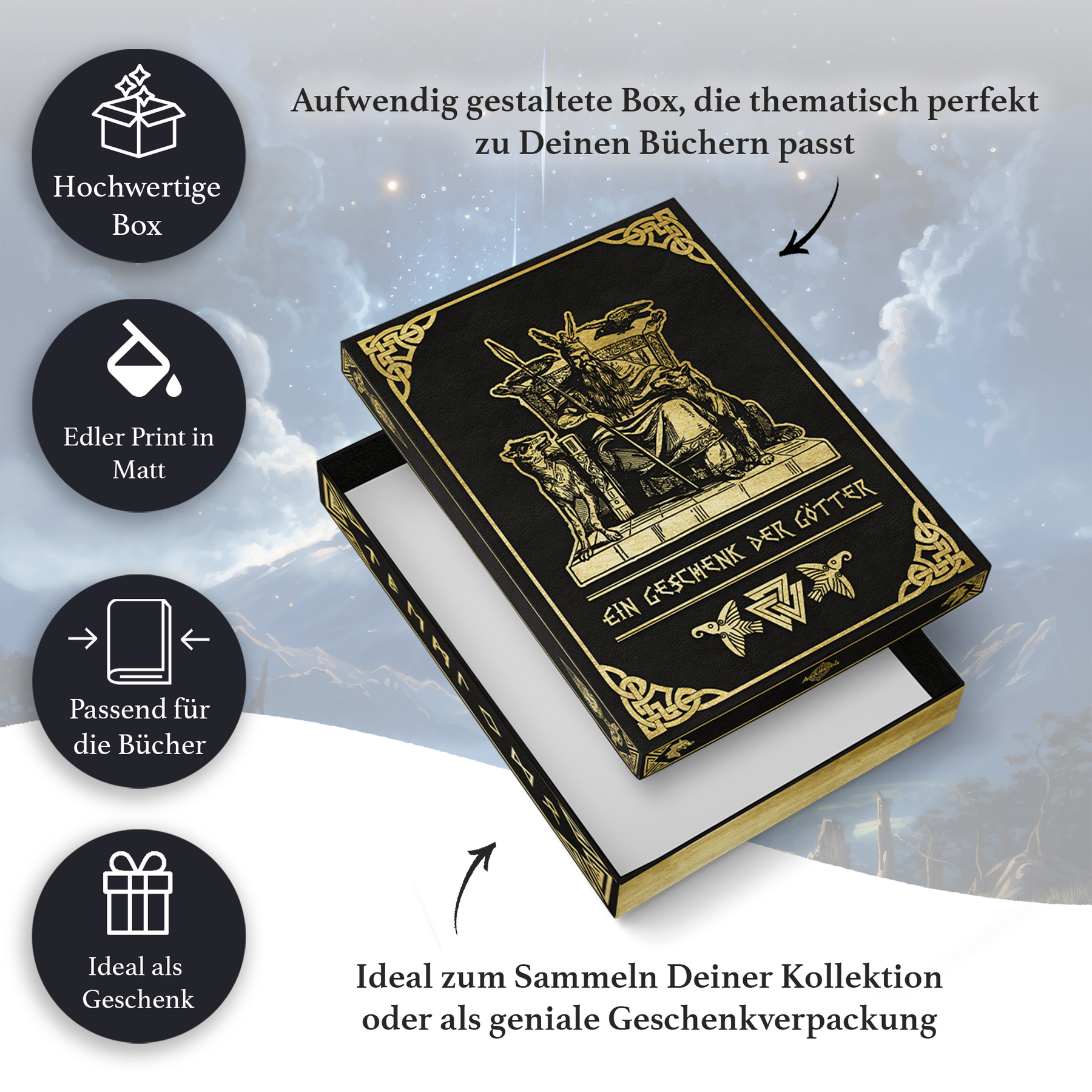 Die Bücher kommen bei dir in einer wunderschönen Buchbox an. So hast du nicht nur ein fantastisches Lesevergnügen, sondern auch ein tolles Sammlerstück, das sich in deinem Bücherregal gut machen wird.